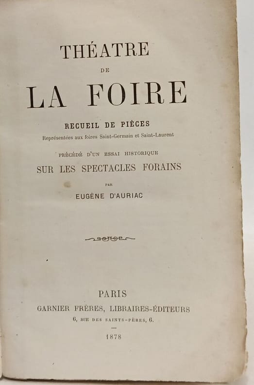 "1878. Paris Garnier-Frères Libraires-Editeurs 1878. Cartonné toilage moderne 12 cm x 18 cm 492 pages. Essai de Eugène d'Auriac texte des pièces de Lesage Fuzelier Dorneval ex-libris. Bon état" "Bon état"