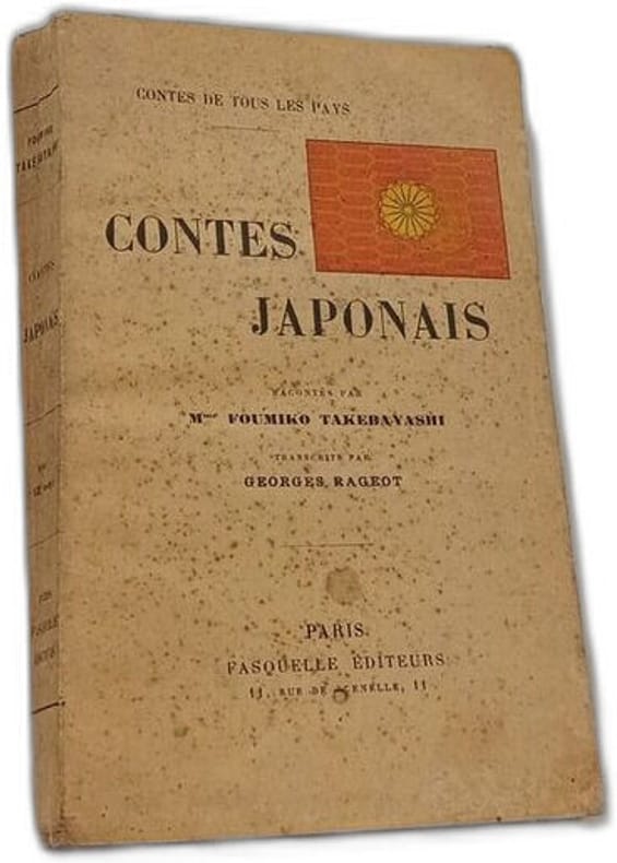 Fasquelle Éditeurs 1933 in12. 1933. Broché. Recueil de contes traditionnels japonais racontés par Foumiko Takebayashi et traduits en français par Georges Rageot. Édition originale de 1933 publiée par Fasquelle Éditeurs comportant des illustrations en noir à pleine page représentant des épisodes des contes