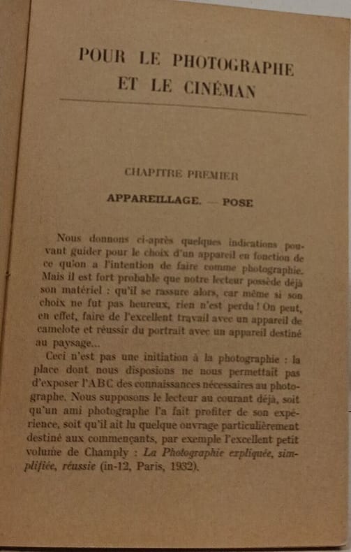 109 figures dans le texte en noir et blanc 2ème édition, 1939 Contents, Chapitres : Préface et table, vii, Texte, 199 pages - Appareillage, pose (Choix des appareils, des heures, calcul des temps de pose, modifications diverses aux appareils - Développement (Formules de préparation des bains avec les divers révélateurs, choix rationnel - Renforcement, affaiblissement (Formules de bains, avantages et inconvénients des divers agents - Tirage (Emploi des divers papiers, appareillage pour travail rapide - Virage, fixage (Formules de bains divers, teinture des films de cinéma - Lavage, séchage (Dispositifs divers d'accessoires, tours de main, formules - Agrandissement, projection (Appareils de fortune, peintures pour écrans de cinéma, collage des films - Applications spéciales (Microphotographie, photographie des plantes, des cavernes, des nuages, reproduction de documents - Installations de laboratoire (Eclairage par chambre noire, disposition et aménagement du laboratoire - Varia (Enlevage des taches, empoisonnement, encres et colles photographiques, récupération des produits) - Index couverture tres legerement défraichie, avec des pliures aux coins des plats, legeres petites taches discretes, infimes déchirures sans manques aux extrémités des mors, la couverture reste en état correct, l'intérieur est propre, papier à peine jauni, coins legerement cornés en début d'ouvrage, cela reste un bon exemplaire de lecture, complet et sain - format de poche