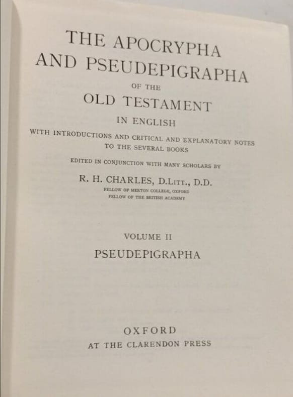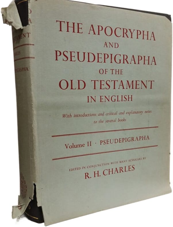 Oxford at the Clarendon Press 1968 in4. 1968. Cartonné jaquette. Ouvrage édité par R. H. Charles publié en 1913 par Clarendon Press Oxford. Il s'agit d'une collection en deux volumes de textes apocryphes et pseudépigraphes de l'Ancien Testament présentés avec des introductions des notes critiques et explicatives ainsi que des traductions en anglais. L'œuvre vise à offrir un guide complet de ces textes souvent négligés éclairant la période de l'histoire juive entre les testaments