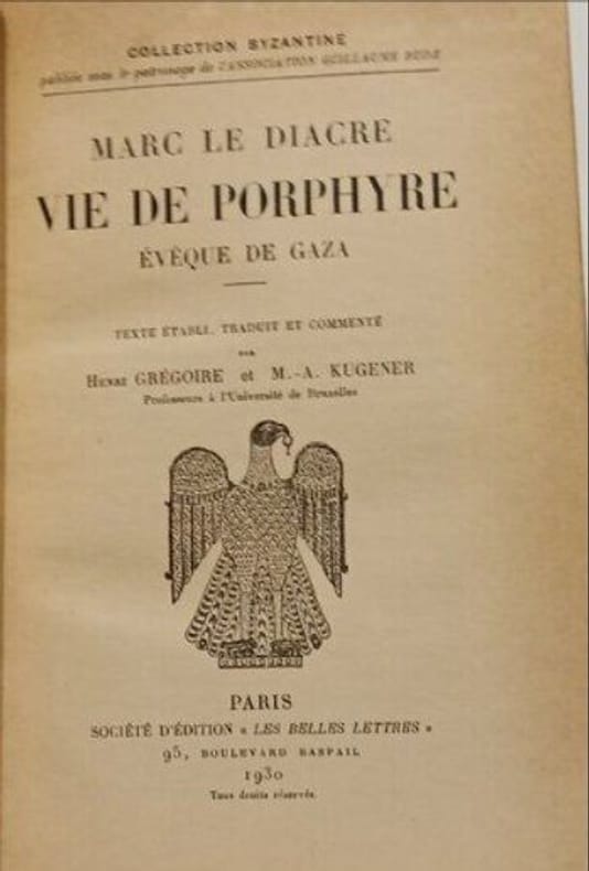 Henri Grégoire démontre que la "Vie de Porphyre", considéré pendant longtemps comme authentique, est un texte remanié et un plagiat (pour le prologue) emprunté à Théodoret, évêque de Cyr. Toutefois, l'auteur n'a pas tout inventé. On ne peut contester l'existence d'un évêque de Gaza du nom de Porphyre et le Marnéion (Temple de Marnas) est bien attesté par ailleurs. Tout ce qui est dit des temples païens et des débuts du christianisme à Gaza est certainement authentique et du plus haut intérêt. — "Voici une édition qui fera date. Elle offre, établi d'une façon définitive, un des textes les plus intéressants et les plus importants sur la cour byzantine à l'époque d'Arcadius, d'Eudoxie et de saint Jean Chrysostome et sur les suprêmes épisodes de la lutte entre le paganisme mourant et le christianisme triomphant. Une très longue Introduction (elle comprend 112 pages, y compris l'indication des Sigles) ouvre le volume. (...) La traduction fourmille de trouvailles heureuses ; elle est aisée, très élégante et très vivante." (R. Guilland, Revue des Études Grecques, 1931)