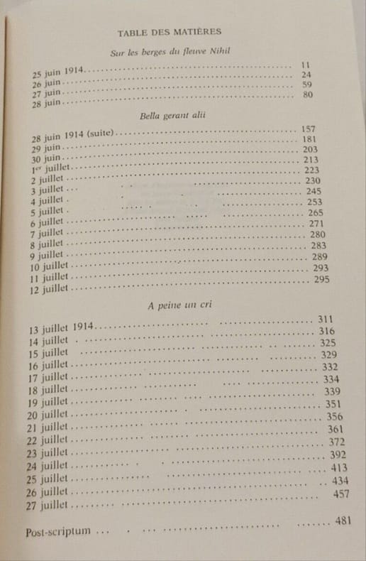 Julliard 1988 481 pages 15x22x4cm. 1988. Broché. 481 pages. Ce roman reconstitue heure par heure et jour après jour l'été 1914 mêlant des centaines de protagonistes célèbres ou inconnus pour créer une fresque totale des derniers jours de paix en Europe avant la Première Guerre mondiale. L'auteur tente d'embrasser la totalité du monde à ce moment charnière de l'histoire
