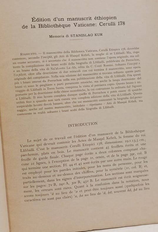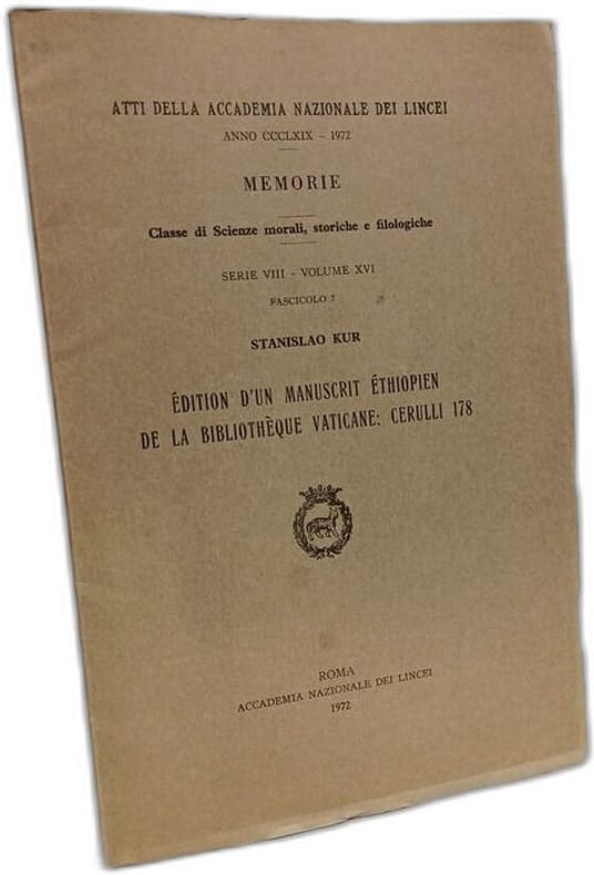 Accademia Nazionale dei Lincei 1972 in8. 1972. Broché. Ce volume présente l'édition critique d'un manuscrit éthiopien (Cerulli 178) conservé à la Bibliothèque Vaticane publié par Stanislao Kur dans les mémoires de l'Accademia nazionale dei Lincei en 1972