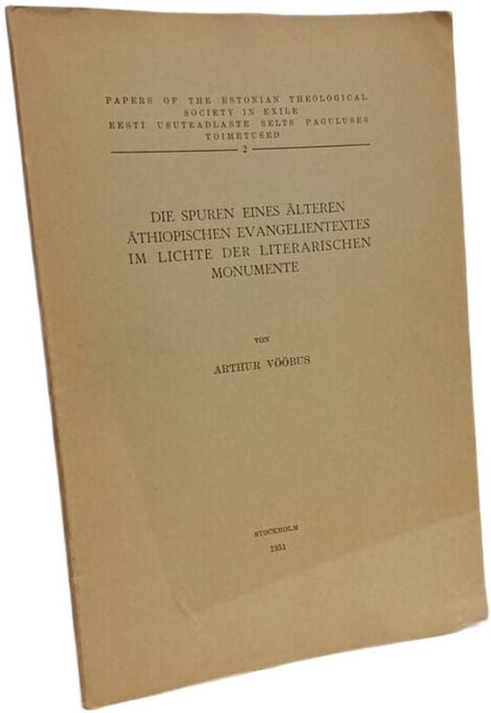 Stockholm 1951 40 pages in8. 1951. Broché. 40 pages. Cet ouvrage de 1951 par Arthur Vööbus examine les traces d'une version plus ancienne du texte des Évangiles en éthiopien (geez) en s'appuyant sur l'analyse des monuments littéraires. Il aborde l'influence des missionnaires syriens de la fin du Ve siècle dans la traduction de la Bible en éthiopien