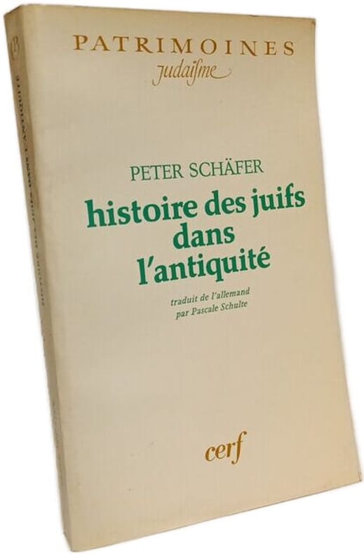 Coll. "Patrimoine judaïsme", Paris, les éd. du Cerf, 1989, in-8, cartonnage souple, couv. texte en vert sur fond blanc éd., 280 pp., catalogue d'éditeur, photos en noir, très bonne bibliographie, index, chronologie, table des matières, Un "manuel" d'histoire qui retrace les neuf cents années entre la conquète d'Alexandre le Grand et la conquête arabe. Un ouvrage de Référence. Pas courant Très bon état