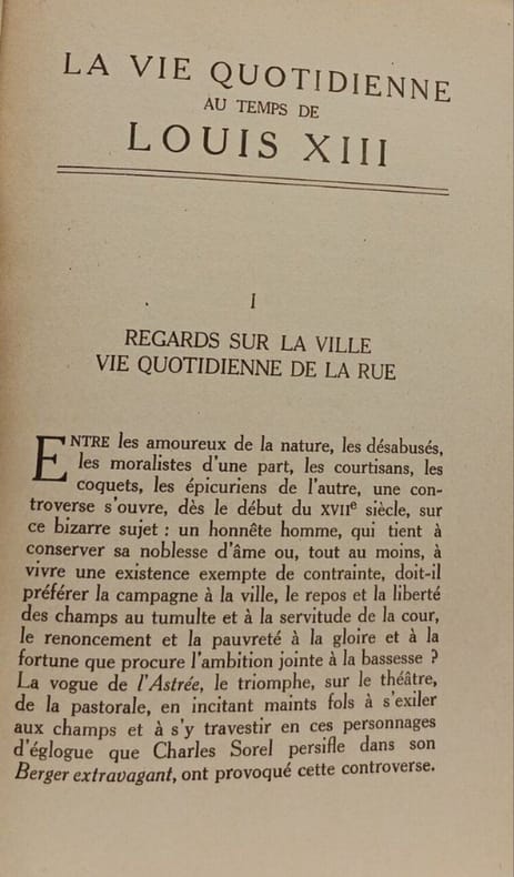 Cette œuvre historique s'intéresse au mode de vie des Français au début du XVIIème siècle sous le règne de Louis XIII, en s'appuyant sur des documents d'archives comme des actes notariés. Emile Magne décrit ainsi l'intérieur des maisons, les vêtements des familles, la cuisine, les discussions des salons. Sommaire :Regards sur la ville.Vie quotidienne de la rue.Vie quotidienne des Grands.Le roi & la cour.Au jour le jour à l'Hôtel de ville.Organisation de la Bourgeoisie.Milices bourgeoises.Le décor intérieur de la maison.Us et coutumes de la vie privée.La vie intellectuelle.Tribulations de Faméliques, autrement dis Gens de Lettres.La Vie mondaine. Volume de format 20x13, broché, bel état, 253pp. Paris, Hachette, 1942. ref/28