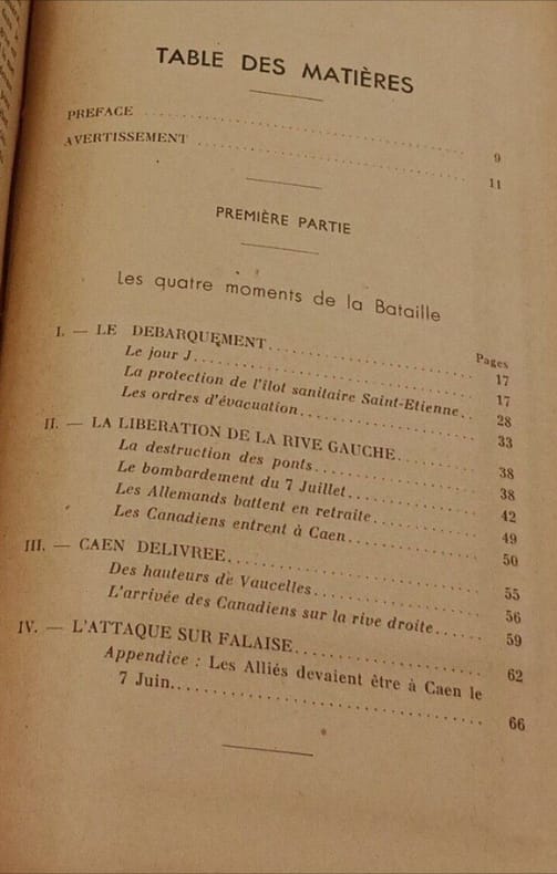 " Les auteurs journalistes au "Normandie" ont publié des articles relatant la vie ardente des caennais durant la bataille, devant le succès de ces reportages, ils ont répondu aux nombreuses demandes, et après six mois de recherches et d'enquêtes ils publient ce dossier où les historiens pourront puiser une utile documentation sur les événements survenus à Caen du 6 juin au 17 août 1944."La Bataille de Caen,Dans les plans du débarquement allié, les stratèges avaient prévu qu'au soir du 6 juin Caen serait prise! Il faudra finalement six semaines et quatre offensives, (Perch, Epsom, Windsor, Charnwood), pour que les Anglo-Canadiens enlèvent à l'ennemi ce qui reste de la ville. La résistance de l'armée allemande fut sous-estiméepar les troupes alliées commandées par Montgomery.Conséquence de la stratégie de bombardements aériens intensifs entre le 6 juin et le 19 juillet 1944, entre 2 000 à 3 000 personnes seront tuées. 600 000 obus se sont abattus sur la ville en soixante dix-huit jours créant un chaos urbain. La violence des bombardements laissera un profond traumatisme parmi la population civile.La bataille de Normandie se terminera le 19 août par la fermeture de "la poche de Falaise" et la destruction d'une grande partie de l'armée allemande dans "le couloir de la mort" entre Trun et Chambois.