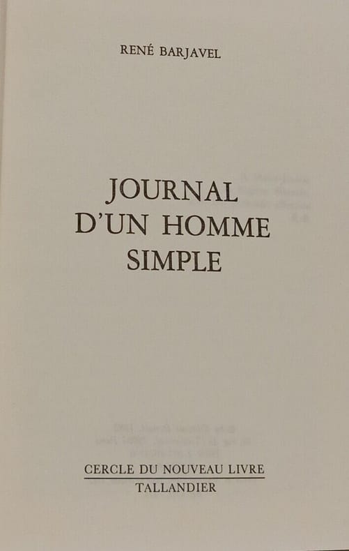 Cercle du Nouveau Livre / Tallandier 1982 in8. 1982. Cartonné. Journal d'un homme simple est un récit autobiographique de René Barjavel paru en 1982 qui constitue la suite de son premier livre autobiographique La Charrette bleue. L'auteur y livre ses réflexions sur la vie quotidienne la nature et l'humanité à travers le regard d'un homme simple avec humour et sensibilité