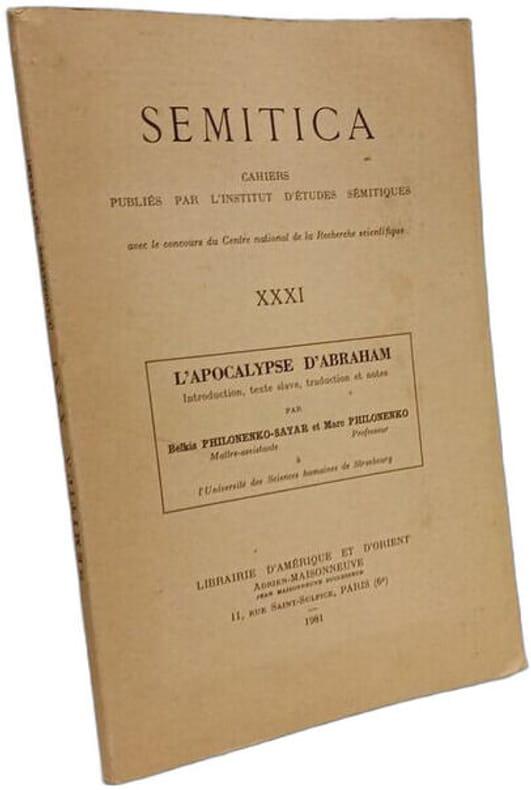 Librairie d'Amérique et d'Orient Adrien-Maisonneuve 1981 in8. 1981. Broché. Il s'agit d'une édition critique du texte slave de l'Apocalypse d'Abraham un écrit apocryphe juif présentée avec une introduction une traduction française et des notes exégétiques