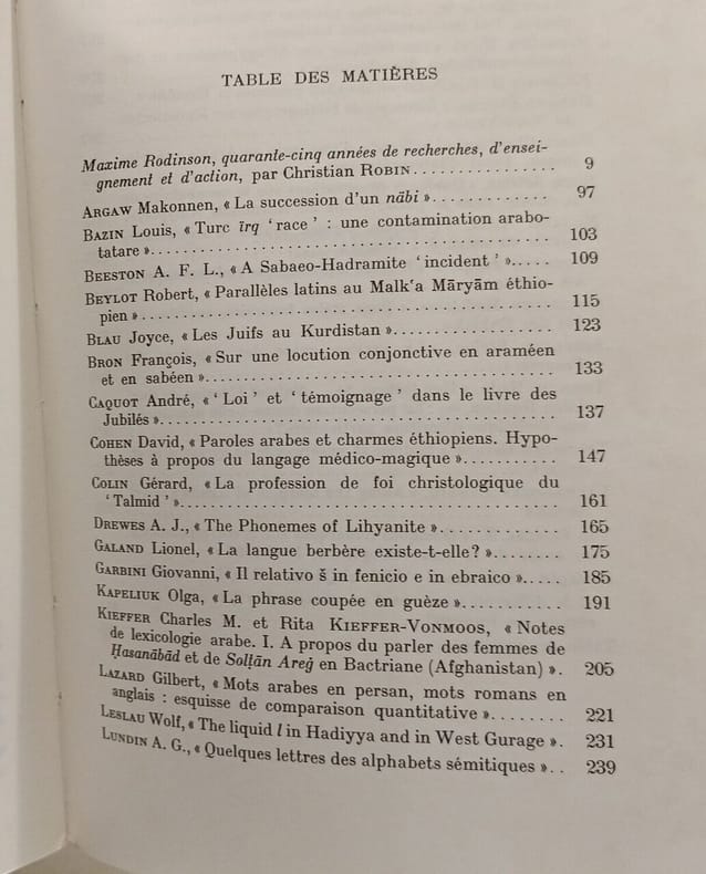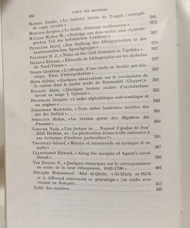 Paris, Geuthner 1986 436pp.+ frontispice (portrait), 24cm., br.orig., dans la série "Comptes rendus du groupe linguistique d'études chamito-sémitiques" supplément no.12, bon état, X86553