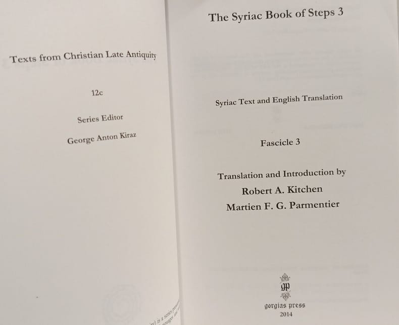 Gorgias Press 2014 300 pages in8. 2014. Broché. 300 pages. Édition bilingue syriaque-anglais du 'Livre des Degrés' une collection de 30 sermons (memre) écrits par un auteur anonyme en Perse à la fin du IVe siècle. L'ouvrage décrit la vie spirituelle d'une communauté chrétienne avant l'avènement du monachisme en mettant en lumière les devoirs et problèmes de deux catégories de chrétiens engagés : les Justes et les Parfaits