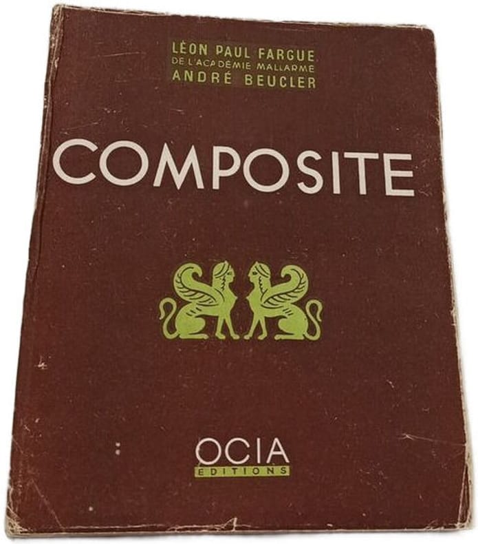 Ocia editions 1945 in8. 1945. Broché. Publié en 1944 à Marseille 'Composite' est un recueil de chroniques littéraires et de poèmes en prose décrivant Paris sous l'Occupation. L'ouvrage signé par Léon-Paul Fargue et André Beucler présente une collaboration dont la nature exacte (écriture individuelle ou à quatre mains) reste incertaine. Il s'agit d'une édition originale illustrée par D. Galanis
