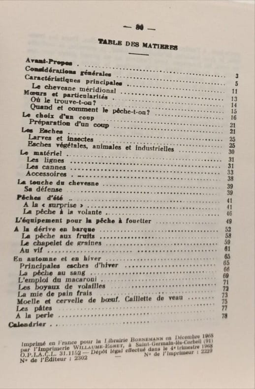 Editions BORNEMANN 1968 in12. 1968. Broché. Guide pratique dédié à la pêche du chevesne (poisson d'eau douce) qui présente les techniques de pêche adaptées à toutes les saisons. L'ouvrage contient des illustrations et des conseils techniques pour les pêcheurs