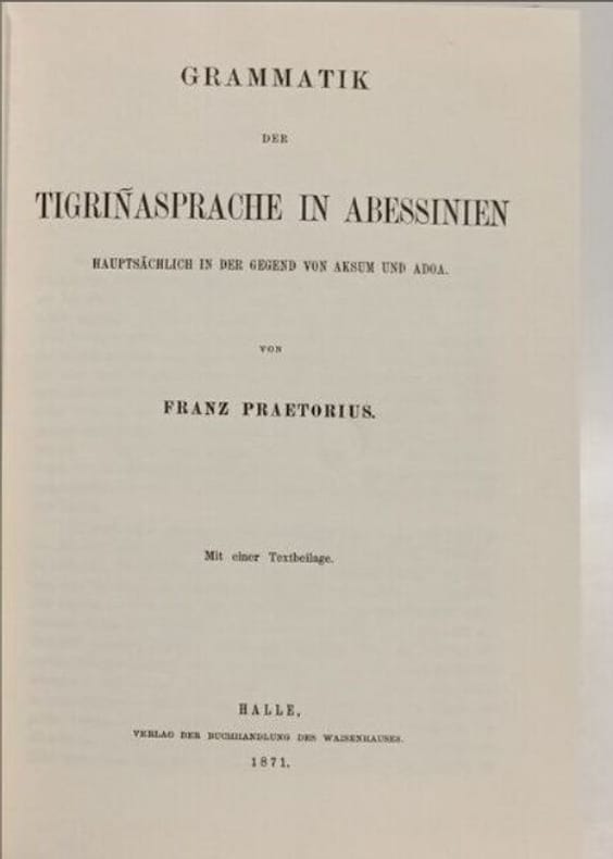 Verlag der Buchhandlung des Waisenhauses 1974 in12. 1974. Cartonné. Ouvrage de grammaire détaillée de la langue tigrigna parlée en Abyssinie historique (actuelle Éthiopie et Érythée) publié en 1871-1872. Il propose une analyse complète de la structure de la langue incluant phonologie morphologie et syntaxe et se concentre principalement sur les régions d'Aksum et d'Adoa