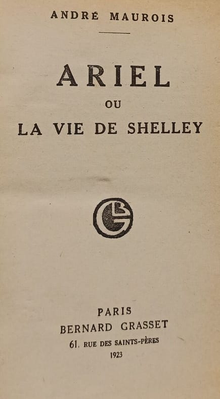 1923 1923. 5 André Maurois - Ariel ou la vie de shelley / Grasset 1923