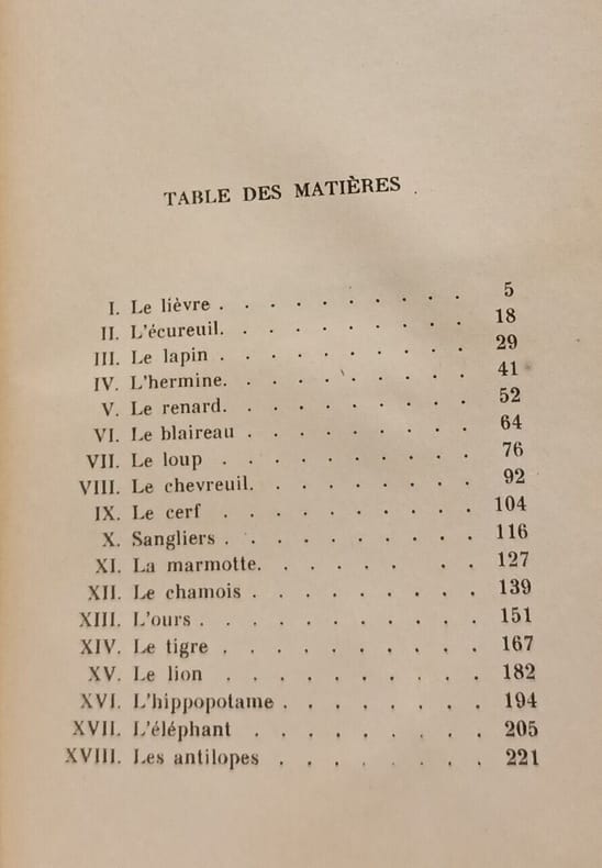 Flammarion 1959 in12. 1959. Broché. Ce recueil de Paul Vialar publié chez Flammarion constitue un bestiaire sentimental et documenté où chaque morceau est consacré à un animal mêlant anecdotes et portraits d'animaux de nos contrées (lièvre renard sanglier...) comme d'animaux exotiques (tigre lion éléphant...). L'œuvre explore la relation complexe entre l'homme chasseur et le monde animal interrogeant la prédation humaine et ses conséquences