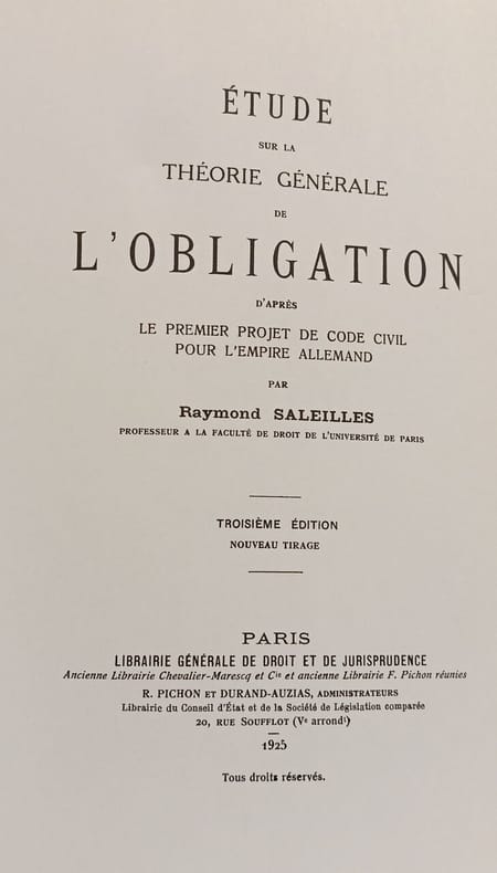 Éditions La Mémoire du Droit 2001 476 pages 16x2x24cm. 2001. Broché. 476 pages. Cette étude de Raymond Saleilles analyse la théorie générale de l'obligation à partir du premier projet de Code civil pour l'Empire allemand. L'ouvrage publié en 1914 est considéré comme ayant exercé une influence profonde sur la doctrine juridique française et a suscité de nombreuses études