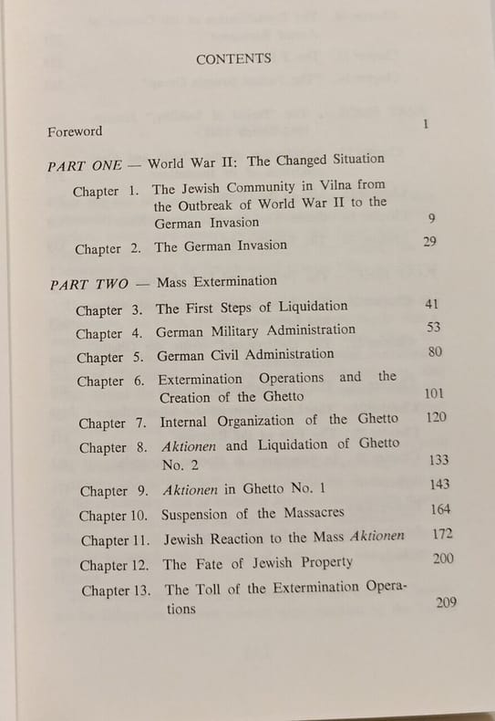 Martyrs' and heroes' rembembrance authority 1980 in8. 1980. Cartonné jaquette. Ce livre de l'historien Yitzhak Arad documente la lutte pour la survie et la résistance de la population juive du ghetto de Vilna face à la persécution nazie pendant la Seconde Guerre mondiale aboutissant à sa destruction