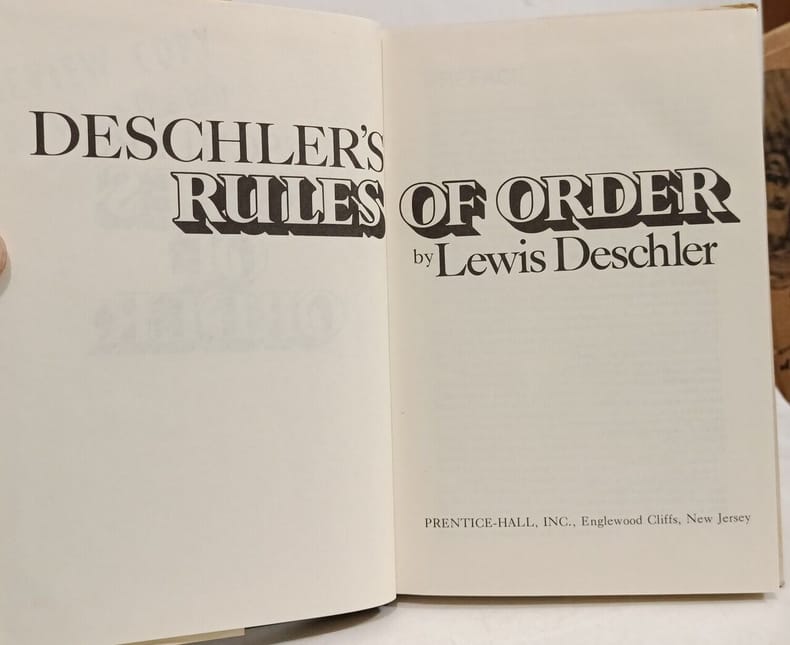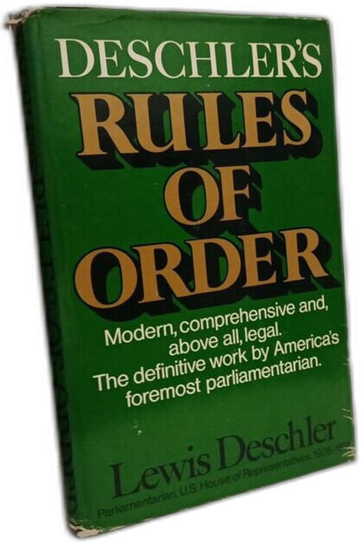 Prentice Hall 1976 240 pages 14 478x2 286x22 86cm. 1976. Relié. 240 pages. Ouvrage de référence sur la procédure parlementaire rédigé par Lewis Deschler ancien parlementaire de la Chambre des représentants des États-Unis (1928-1974). Le livre est basé sur les règles de la Chambre des représentants américaine et sert de guide pour la conduite des débats et des procédures législatives