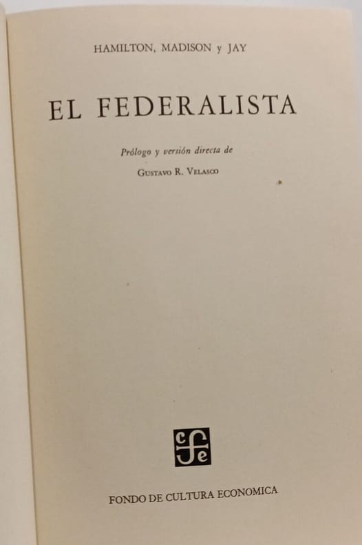 Fondo de Cultura Económica 1957 in8. 1957. Cartonné. Le Fédéraliste est une série d'essais écrits sous le pseudonyme Publius par Alexander Hamilton James Madison et John Jay pour défendre et promouvoir la ratification de la nouvelle Constitution des États-Unis après la Révolution américaine. L'ouvrage présente une analyse approfondie des principes constitutionnels des arguments pour un gouvernement central fort et des réponses aux critiques de l'époque