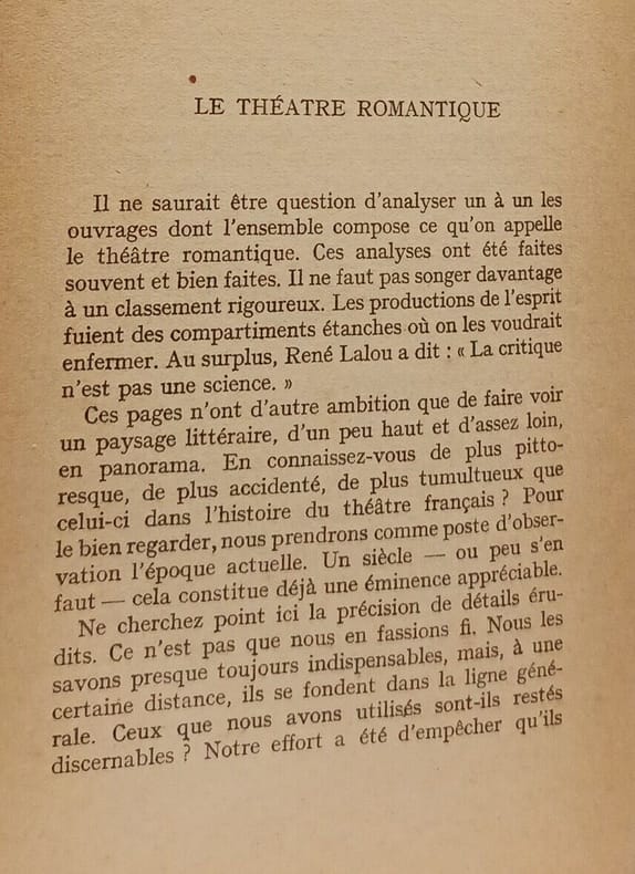 Les Oeuvres Représentatives 1929 in12. 1929. Broché. Cette anthologie publiée en 1929 par Robert de Smet présente et analyse le théâtre romantique français à travers les œuvres de ses principaux représentants : Victor Hugo Alexandre Dumas Alfred de Vigny et Alfred de Musset. L'ouvrage comprend un florilège de textes de ces auteurs et s'inscrit dans la collection "Le XIXe siècle" des éditions Les Oeuvres Représentatives
