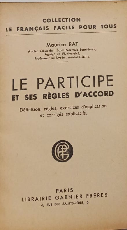 Garnier frères 1963 74 pages collection Le français facile pour tous. in-12. 1963. broché. 74 pages. Définition règles exercices d'application et corrigés explicatifs