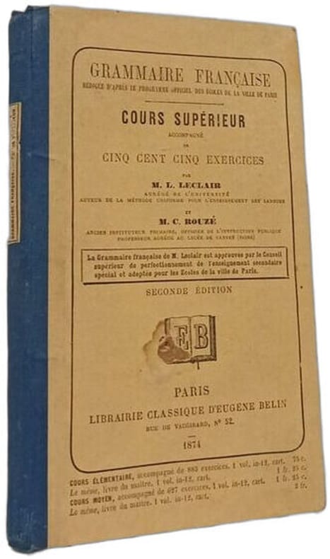 Librairie Classique d'Eugène Belin 1875 in12. 1875. Cartonné.