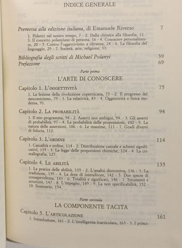 Rusconi Libri 1990 632 pages in8. 1990. Broché. 632 pages. L'opera di Michael Polanyi curata da E. Riverso propone una visione rivoluzionaria della conoscenza ridefinendo il processo cognitivo e la sua applicazione alla scienza alla società e alla comprensione dell'uomo e dell'universo. Il testo affronta la giustificazione della conoscenza personale attraverso la logica dell'affermazione la critica del dubbio e il concetto di impegno esplorando il rapporto tra conoscere ed essere