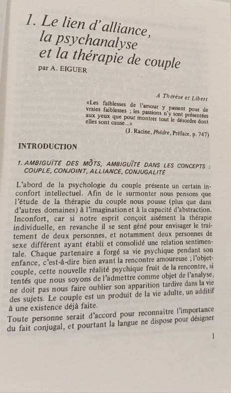 Dunod 1984 26x1 2x21 8cm. 1984. Broché. Cet ouvrage de référence écrit par Alberto Eiguer et d'autres auteurs présente la thérapie psychanalytique du couple. Il explore les concepts clés comme le transfert et le contre-transfert propose une typologie clinique des couples (œdipien anaclitico-dépressif narcissique pervers) et examine les forces inconscientes à l'œuvre dans la relation amoureuse. Il s'adresse aux professionnels et fait le point sur les apports de la thérapie familiale psychanalytique