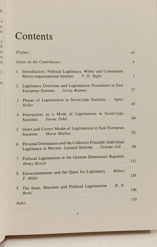 Palgrave Macmillan 1982 192 pages in8. 1982. Cartonné. 192 pages. Cet ouvrage collectif dirigé par T.H. Rigby et Ferenc Fehér examine les mécanismes de légitimation politique dans les États communistes dépassant l'idée simpliste que le pouvoir y repose uniquement sur la coercition ou l'idéologie. Il propose des analyses théoriques notamment inspirées de Weber et des études de cas comme celle de la République démocratique allemande pour comprendre comment ces régimes cherchent à fonder leur autorité