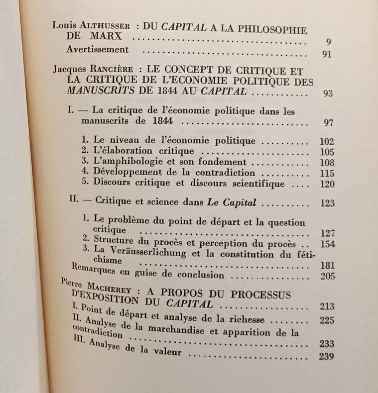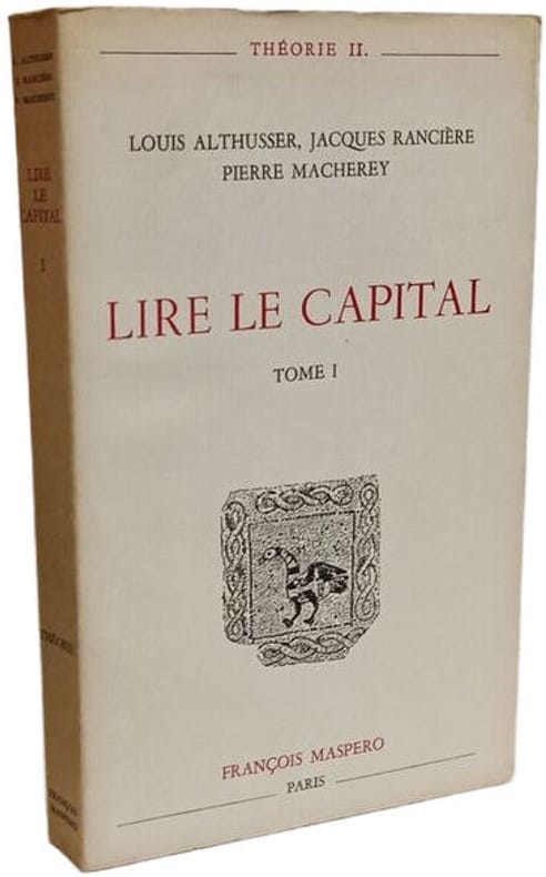 François Maspero 1967 in8. 1967. Broché. Lire le Capital est un ouvrage collectif issu d'un séminaire dirigé par Louis Althusser à l'ENS publié en 1965. Il propose une lecture philosophique et symptômale du Capital de Marx visant à dégager la philosophie sous-jacente de Marx à travers une approche structuraliste plutôt qu'une interprétation économique humaniste ou historiciste
