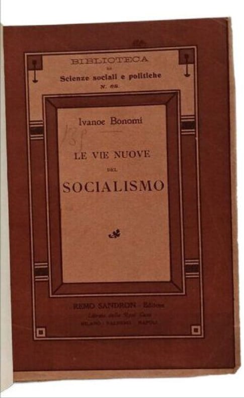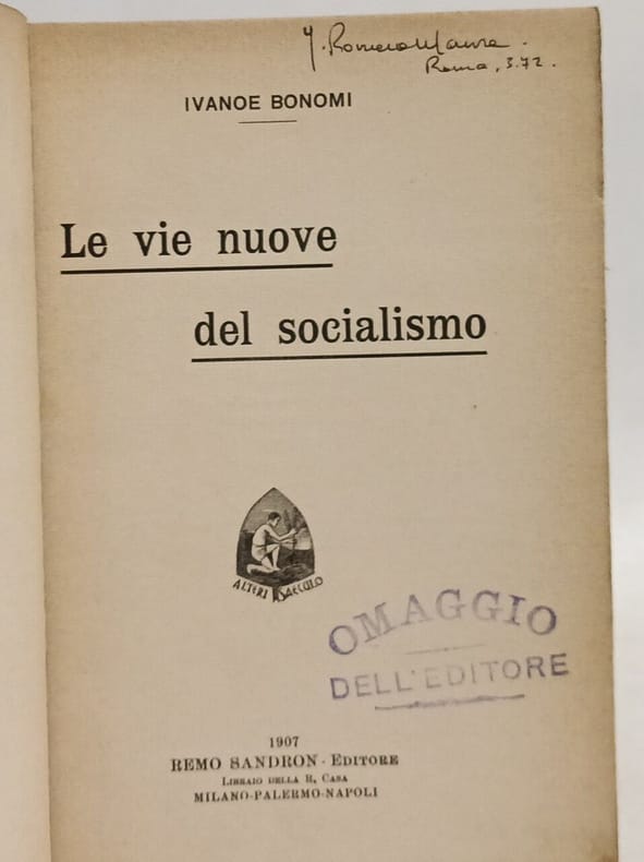 R. Sandron 1907 in8. 1907. Cartonné. Essai publié en 1907 par Ivanoe Bonomi figure du socialisme italien qui synthétise et clarifie les idées de l'aile réformiste de droite du parti dirigée par Bissolati Cabrini et Podrecca. L'ouvrage s'inscrit dans le débat sur les voies de croissance et de développement du socialisme en dialogue avec les courants européens contemporains en Allemagne Angleterre et France