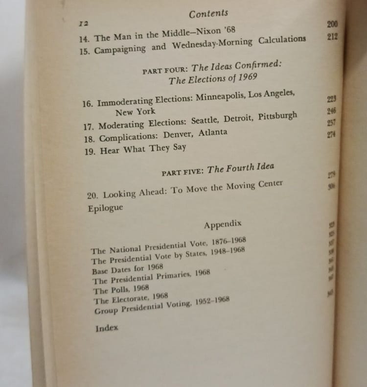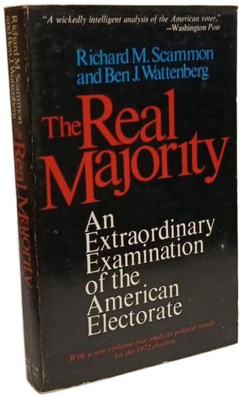 Coward McCann & Georghegan 1971 in8. 1971. Broché. Publié en 1970 ce livre analyse les données électorales notamment de l'élection présidentielle de 1968 pour démontrer que l'électorat américain est fondamentalement centriste. Les auteurs soutiennent que pour être viables les partis et candidats doivent s'adresser à cette "majorité réelle" du centre un groupe dont les valeurs et intérêts étaient auparavant négligés mais sont désormais courtisés par les deux grands partis