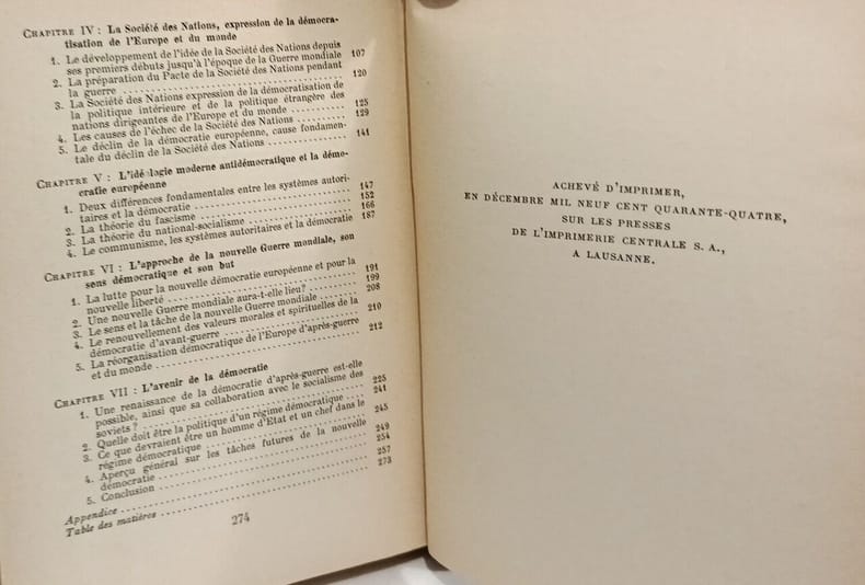 Éditions de la Baconnière 1944 in8. 1944. Cartonné. Ouvrage écrit en 1944 par Edouard Beneš alors président de la Tchécoslovaquie dans lequel il propose une analyse méthodique de la société politique d'avant-guerre et une réflexion sur l'avenir de la démocratie. Le livre présente son diagnostic sur l'état de la démocratie à cette période charnière