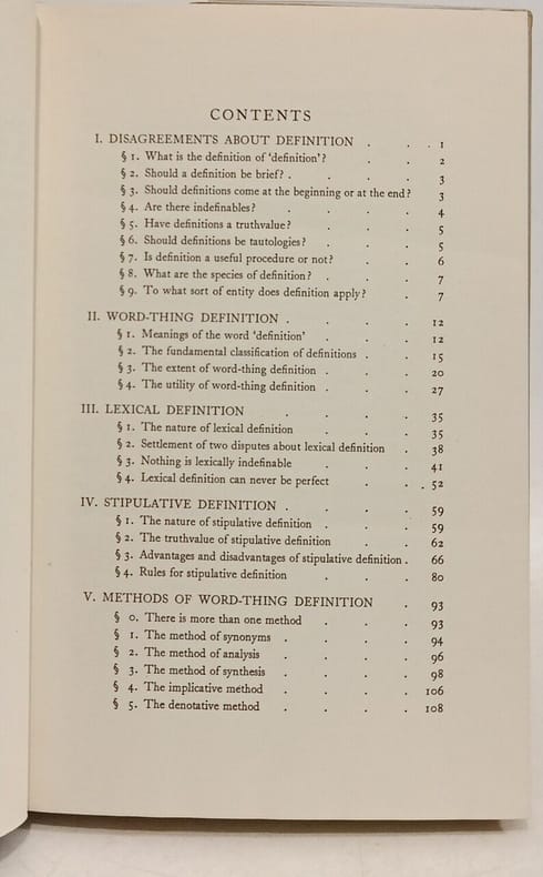 At the Clarendon Press | Oxford 1968 in8. 1968. Cartonné jaquette. Cet ouvrage de Richard Robinson publié par Clarendon Press Oxford a pour objectif principal de clarifier le concept de définition et d'améliorer les pratiques de définition. Il s'agit d'un travail académique en logique et philosophie structuré en chapitres abordant les désaccords sur la définition la définition mot-chose et d'autres aspects méthodologiques