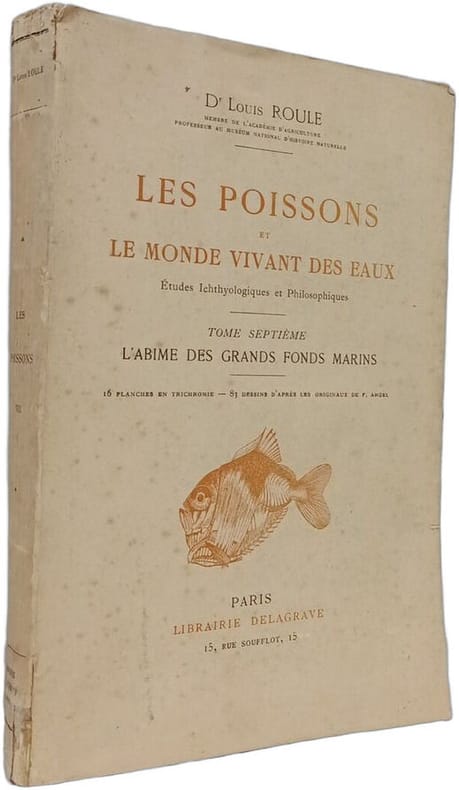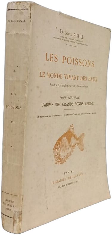Librairie Delagrave 1934 in8. 1934. Broché. Ouvrage scientifique majeur en 10 volumes du Dr Louis Roule consacré à l'étude des poissons et de la vie aquatique. Publié entre 1926 et 1937 par Delagrave il combine rigueur ichtyologique et approche philosophique agrémenté de nombreuses planches en couleurs et dessins