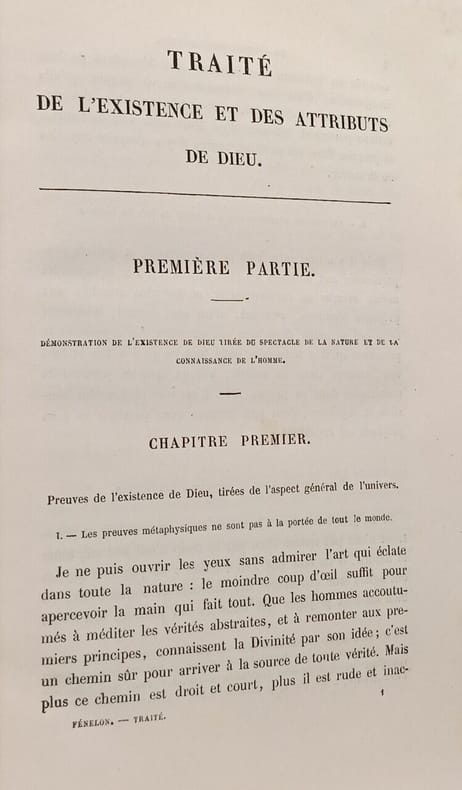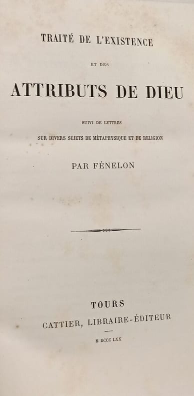 Cattier Libraire-Éditeur 1870 in8. 1870. Relié. Ouvrage posthume de Fénelon publié en 1718 composé de deux traités. Le premier vise à démontrer l'existence et les attributs de Dieu par l'observation de la nature notamment du monde vivant et de l'esprit humain dans une démarche de théologie naturelle. Le second traite de divers sujets de métaphysique et de religion