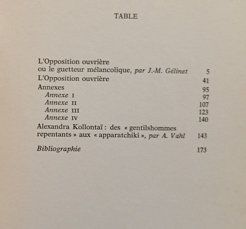 Seuil 1974 in8. 1974. Broché. Ce livre présente le texte fondateur de l'Opposition ouvrière une faction critique au sein du Parti bolchevique après la Révolution russe co-animée par Alexandra Kollontaï. Le groupe soutenu par les syndicats défendait une plus grande démocratie interne l'autonomie des syndicats et le contrôle ouvrier sur la production. L'ouvrage est accompagné d'une biographie de Kollontaï mettant en lumière son parcours de révolutionnaire marxiste et de féministe préconisant l'amour libre