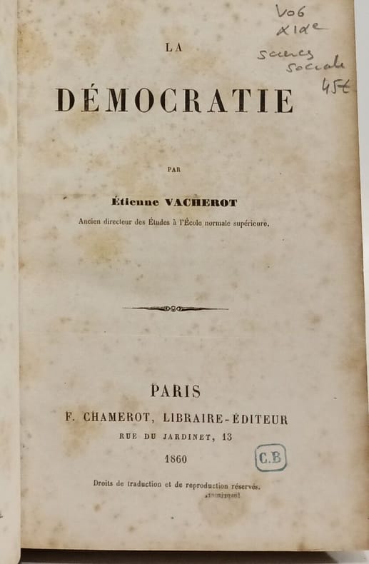 Plusieurs étude sur un collectifs : L'homme pressé - La génération de 1840 - Aristocrates et royalistes à l'époque de Tocqueville - Du Vicomte de Chateaubriand au Comte de Tockqueville. - Les Idéologues au tournant du siècle de Tocqueville - La démocratie et ses valeurs vers 1835. - Images et métaphores significatives dans la quatrième partie de la Démocratie en Amérique. - Tocqueville, un styliste du paradoxe. - L'esprit de liberte et l'esprit d'égalité. - Légitimation de la modernité. Démocratie et religion. - Démocratie, richesse et pauvreté. - Tocqueville penseur de la prison et de la liberté. - Le sens de l'égalité et de la liberté chez Rousseau et Tocqueville. - Tocqueville vu par Raymond Aron - et plusieurs autres. Bon Etat Franco de port France jusqu'à 29 euros iclus. PAYPAL immédiat. MONDIAL RELAY pour : FRANCE, Portugal, Pologne, Espagne, Allemagne, Autriche, Pays Bas, Luxembourg, Italie, Belgique. Toutes les étapes sont accompagnées. Achat, estimations et listages (Papiers, Archives, monographies, arts et métiers, sciences humaines et bibliophilie) France / Suisse (sur rdv).