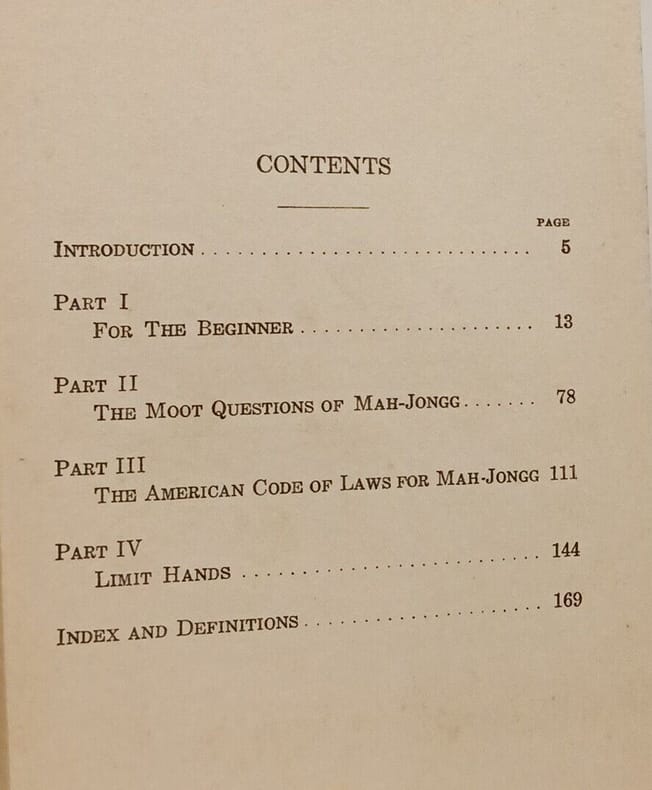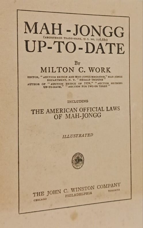 The John C. Winston Company 1924 in12. 1924. Cartonné. Mah-Jongg Up-To-Date est un livre de règles et de stratégies pour le jeu de Mah-Jongg publié en 1924 par Milton C. Work. Il inclut les lois officielles américaines du jeu et vise à présenter les différentes variantes pratiquées à l'époque notamment le Mixed-Hand Game le One-Double Game et le Cleared-Hand Game