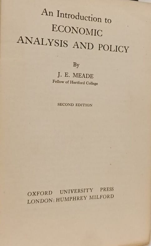 Oxford University Press 1937 in12. 1937. Relié. Manuel d'économie classique de J.E. Meade publié par Oxford University Press qui présente les principes fondamentaux de l'analyse économique et leur application à la politique économique. L'ouvrage aborde des thèmes comme le fonctionnement du système économique le taux d'intérêt l'investissement et le rôle des banques