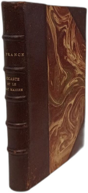 Le livre d'Anatole France à l'origine de son départ de l'écurie Lemerre. Paris, Calmann Lévy, coll. « Bibliothèque contemporaine », 1879. 1 vol. (115 x 180 mm) de [2], XVI-299 p., [1] et 1 f. Bradel demi-percaline verte, pièce de titre, tête dorée, date en pied, couvertures et dos conservés (reliure signée de V. Champs). Édition originale dont il n'a pas été tiré de grands papiers. Il existe une édition Lemerre de Jocaste, parue la même année mais dont le texte varie grandement de l'édition Calmann Lévy.