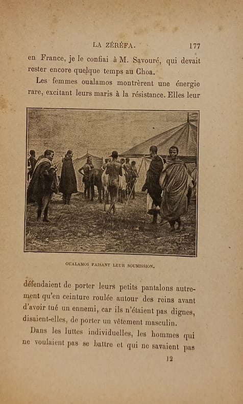 De Paris à Obok - Obok - Djibouti - de Djibouti au harrar - le Harrar - De Harrar à Addis Ababa (Choa) - notre factorie à Addis Ababa illustré de gravures dans le texte et d'une photo dans le texte de la grande rue d'Obok, d'une page de gravures hors texte de Djibouti (la rade, poste de police à l'entrée de la ville, les jardins d'Ambouli, marché à la viande, café indigène). Le palais de Ménélik - je suis présenté au Negous - je photographie l'impératrice Taïlou - le marché - les Abyssins, illustré de gravures dans le texte dont le cortège de l'impératriceTaïtou, d'une gravure pleine page du marché à Addis Abeba, de la photo dans le texte de l'impératrice, etc.; >Le Guébi ou palais impérial - le lebacha - le roi de Djimma et le ras Mangacha viennent à Addis Abeba - le colonel Piano, envoyé italien - je pars pour une expédition au Oualamo à la suite du négous illustré de gravures dans le texte dont l'artillerie de Négous et le bégironde Baltcha, d'une gravure pleine page de l'arrivée au Guébi d'Addis Abeba. En pays Oualamo - la zéréfa - l'invasion - fin de l'expédition, revue et retour à Addis Abeba - D'Addis Abeba à Djibouti par le désert (cavaliers abyssins, chef de tribu oualamo), illustré d'une carte dans le texte de la route de Djibouti au Oualand par Harar et Addis Abeba, suivie par J.G. Vanderheym, de gravures dans le texte , d'une gravure pleine page du défilé de la cavalerie devant Ménélik. Classification Dewey : 70.4412-Le journal des voyages