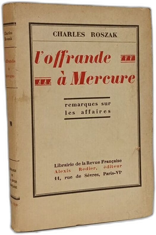Librairie de la Revue Française Alexis Redier 1928 in12. 1928. Broché. Ouvrage de Charles Roszak publié en 1928 présentant ses réflexions et remarques sur le monde des affaires s'appuyant vraisemblablement sur son expérience professionnelle dans l'industrie et l'ingénierie