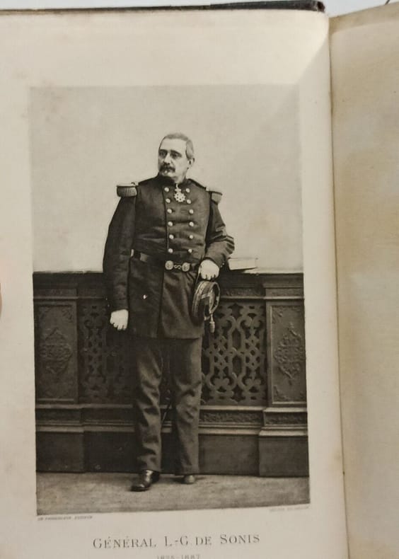 LE GÉNÉRAL DE SONIS d'après ses papiers et sa correspondance, par M.Baunard vol in-8°, 200x135, 613 pp, un portrait photo en frontispice, reliure demi-chagrin, qqs rousseurs éparses, bel état Table : La Guadeloupe, la France, le collège (1825-1844) ; Saint-Cyr, Castres, Paris, Limoges (1844-1854) ; L'Algérie, la Kabylie (1854-1859) ; la campagne d'Italie (mai-août 1859) ; le Maroc (octobre 1859) ; Tenez, Laghouat, Saïda (1860) ; combat de Metlili, une expédition dans le désert (1865-1866) ; Laghouat, la vie chrétienne ; combat d'Aïn-Mahdi (1869) ; Aumale (1869-1870) ; l'armée de la Loire, Brou et Loigny (1870. Récit circonstancié des opérations militaires autour de Châteaudun et dans la journée de Loigny, quand le général de Sonis commandait le 17e corps) ; l'ambulance et le congé (1871) ; Rennes (1871-1874) ; Saint-Servan (1874-1880) ; Châteauroux, Limoges (1880-1883) ; Paris, l'éternité (1883-1887). Paris, Poussielgue, 1893 ref/116
