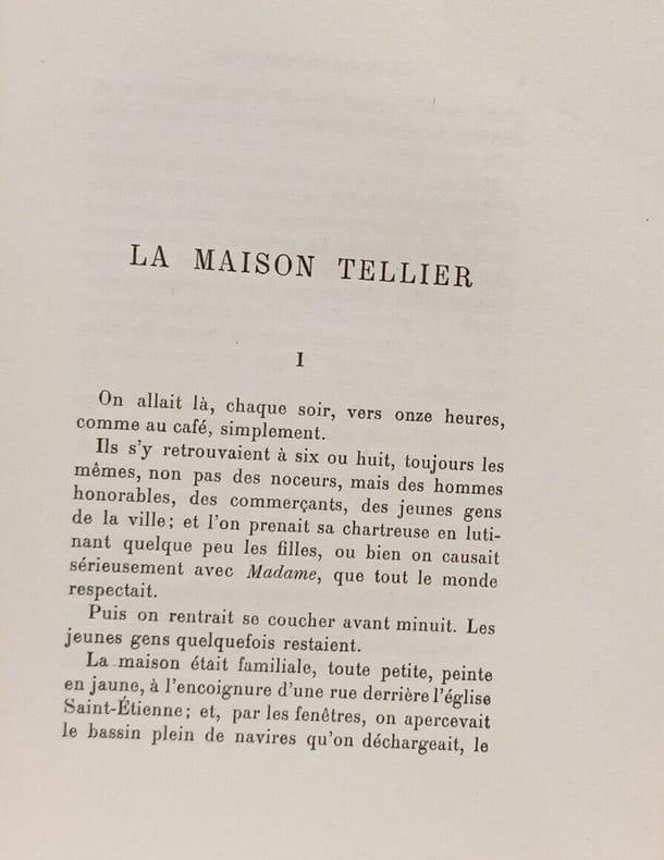 Calmann-Lévy Éditeurs 1927 in8. 1927. Broché. La Maison Tellier est une nouvelle réaliste de Guy de Maupassant publiée en 1881 qui raconte l'histoire d'une maison close tenue par Madame Tellier à Fécamp. L'œuvre explore avec humour et lucidité le quotidien des prostituées et de leur clientèle offrant une peinture critique de la société française de la Belle Époque et de ses hypocrisies
