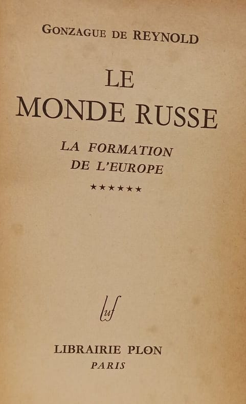 Librairie Plon 1950 in8. 1950. Broché. Sixième volume de la collection 'La Formation de l'Europe' de Gonzague de Reynold publié en 1950 qui analyse le rôle et la place du monde russe dans le processus de formation de la civilisation européenne