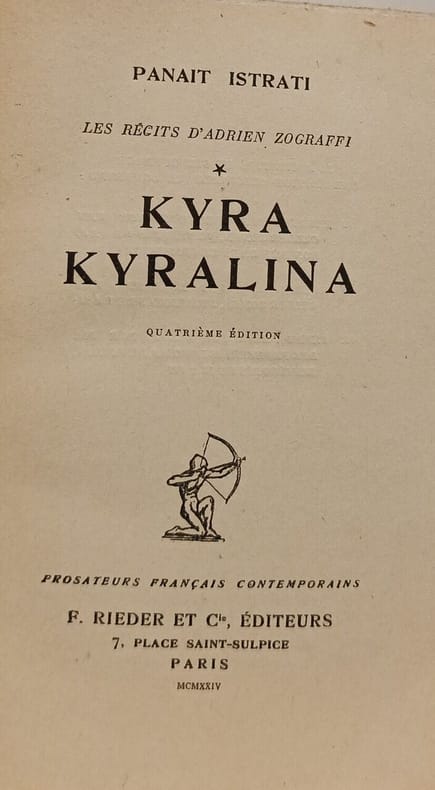 F. Rieder et Cie Éditeurs 1924 in8. 1924. Broché. Premier volume du cycle des Récits d'Adrien Zograffi ce roman raconte l'histoire tragique de Stavro (Adrien Zograffi) et de sa sœur Kyra Kyralina pris dans les tourments de l'époque ottomane en Roumanie Turquie et Syrie. C'est un récit d'aventures et de formation qui mêle épopée familiale destin tragique et évocation des haïdoucs ces bandits d'honneur luttant pour la justice