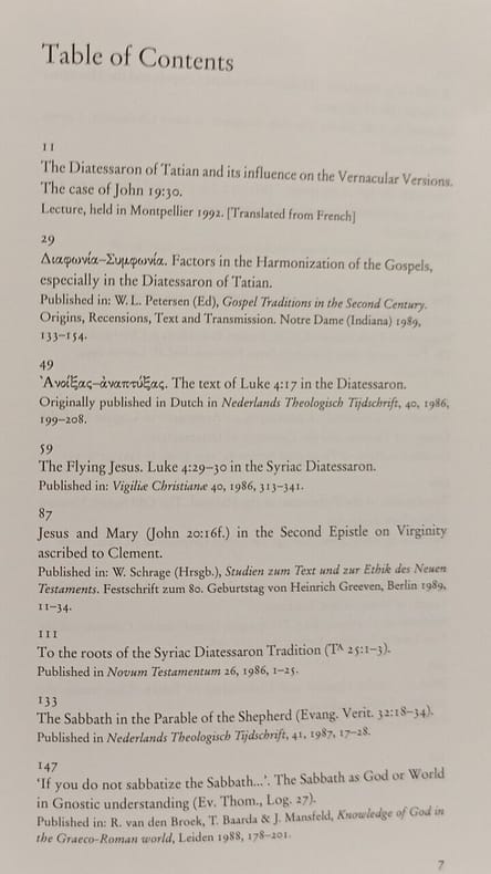 Kok Pharos Publishing 1994 320 pages 14 986x1 778x22 86cm. 1994. Broché. 320 pages. Ce recueil d'essais de Tjitze Baarda présente des décennies de recherche sur le Diatessaron de Tatian une harmonie des quatre évangiles créée aux premiers siècles du christianisme. L'ouvrage aborde les défis de la reconstruction de ce texte perdu et son importance pour comprendre l'unité perçue des récits évangéliques