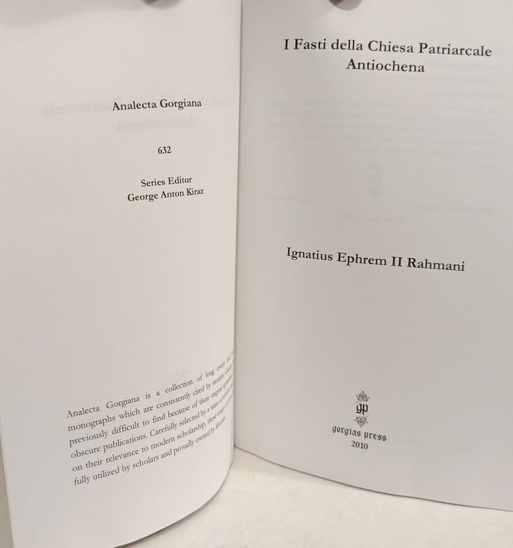 Gorgias Press 2010 72 pages 1x23x17cm. 2010. Broché. 72 pages. Cet ouvrage de Rahmani propose une étude historique de l'Église patriarcale d'Antioche et de ses relations avec les autres églises particulièrement l'Église romaine. Il publie également avec traduction latine une série de textes inédits principalement en syriaque avec un en arabe